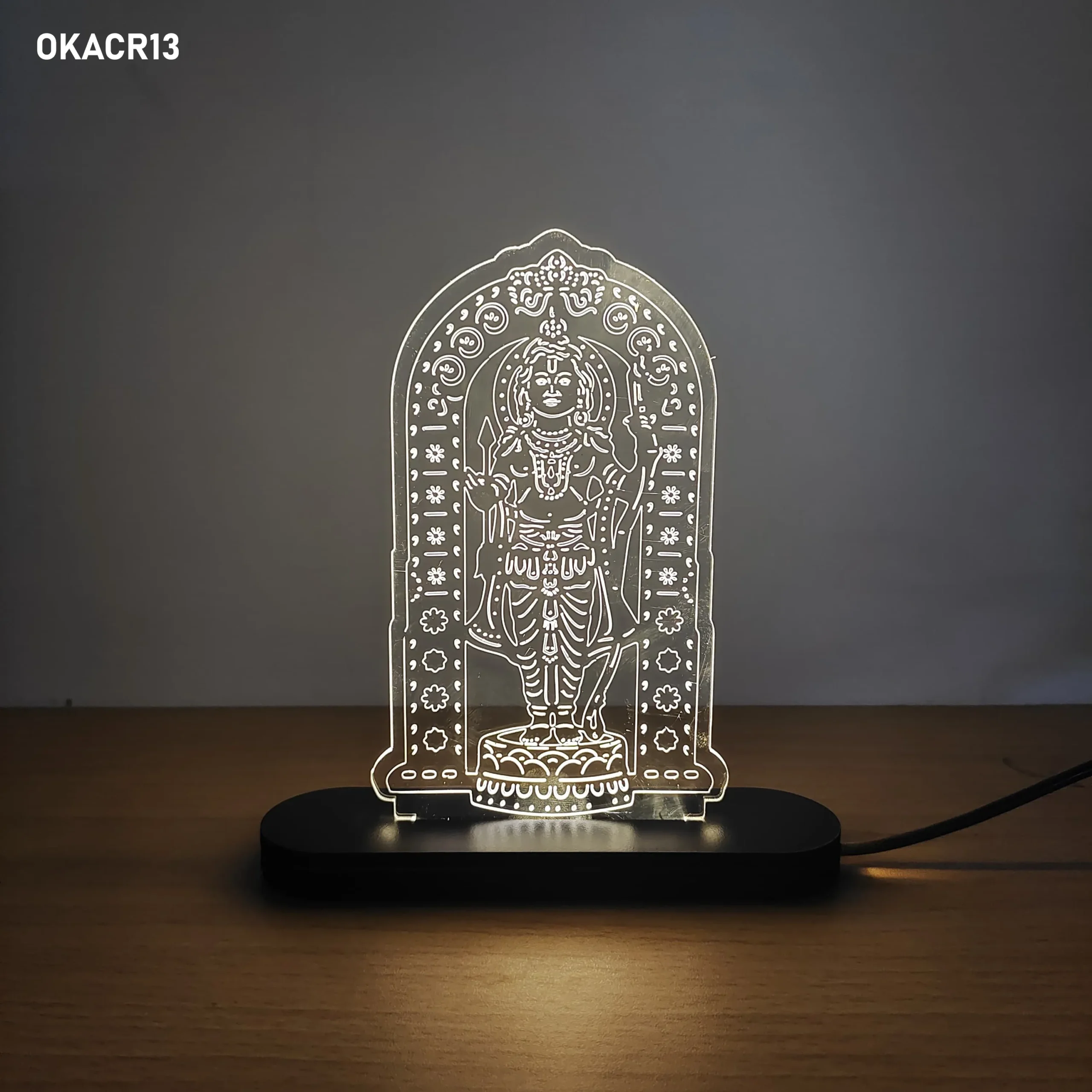 Enhance your space with our Acrylic LED Table Top, designed with beautifully laser-cut devotional artwork and a glowing LED base. Made from high-quality clear acrylic, this decorative piece creates a stunning illuminated effect that highlights the intricate design and adds elegance to any setting.