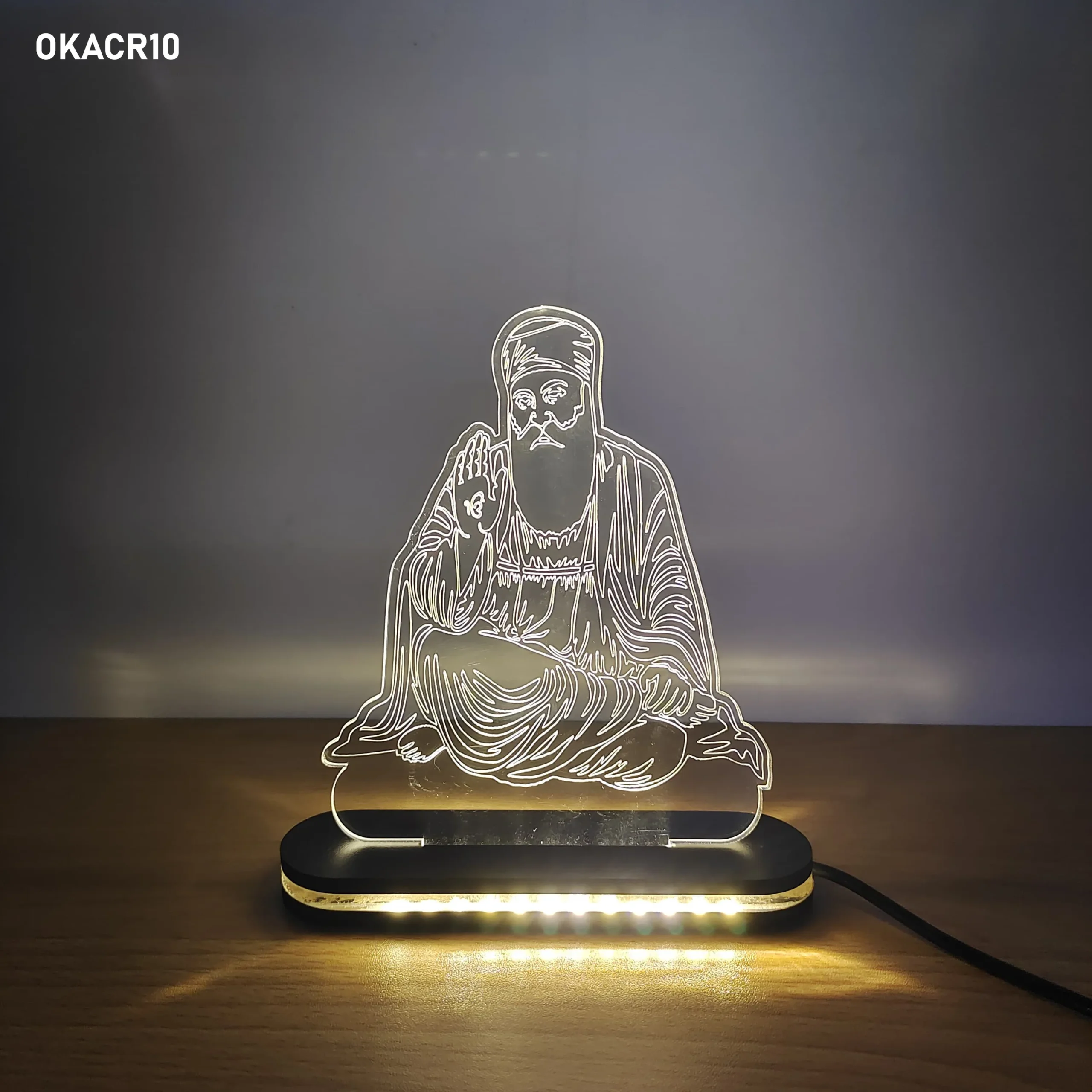 Enhance your space with our Acrylic LED Table Top, designed with beautifully laser-cut devotional artwork and a glowing LED base. Made from high-quality clear acrylic, this decorative piece creates a stunning illuminated effect that highlights the intricate design and adds elegance to any setting.
